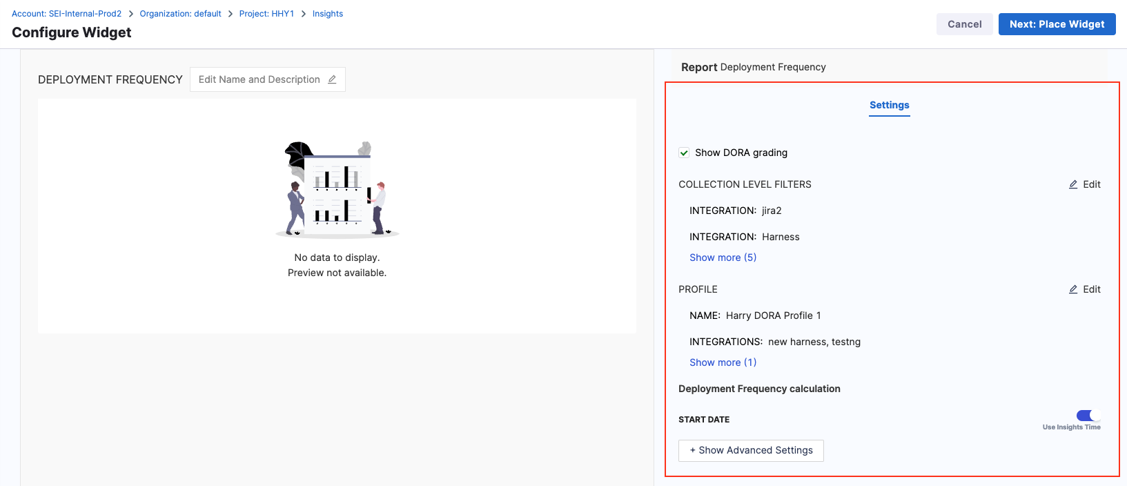 - Select the Deployment Frequency widget.